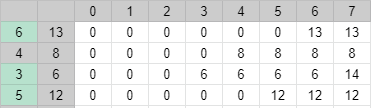각 열은, 해당 물건을 필수적으로 가져간다고 했을 때의 총 가치를 나타낸다. 점화식은 아래와 같다.