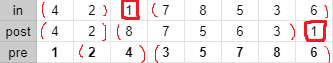 2. inorder에서 root의 인덱스를 찾는다. 다음 3번의 작업에서, 해당 인덱스를 기준으로 inorder의 좌우를 나누고, 또한 left의 총길이(left가 4, 2이면 총길이는 2)를 나타내는 leftLength를 구할 수 있다.