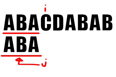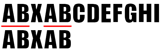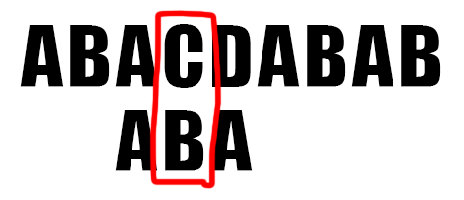 해당 탐색을 통해, 접미사와 접두사가 AB로 겹친다는 것을 알게 되었다. 이 정보를 이용해, 다음 탐색은 아래와 같이 행한다는 것이다.