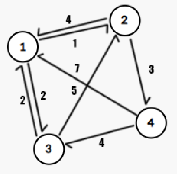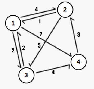 여기에서 2부터 시작하는 다익스트라 알고리즘을 이용하면, (2->모든 노드)의 최단거리를 구할 수 있다.
