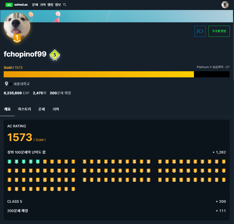 여담이지만, 백준 온라인 저지에서 200문제를 해결하게 되었다.