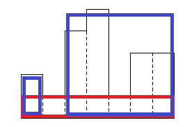 위 사진에서 가장 큰 직사각형의 후보는 총 3개가 있다. 각각 가장 낮은 높이에서의 직사각형, 파란색 왼쪽 직사각형, 파란색 오른쪽 직사각형이다. 여기서 파란색 구간에 get_square_area()로 재귀 함수를 호출해주는 식이며, 마지막으로 이 3개의 넓이 중 가장 큰 것을 리턴해준다.