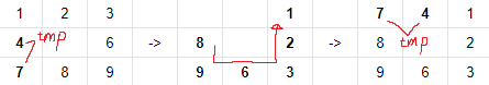 tmp[0] = cube[index][rotation[saveIndex].first][rotation[saveIndex].second];