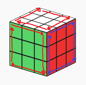 총 2개의 사항을 구현해야한다. 첫째로, 하나의 면을 돌렸을 때 영향을 받는 다른 4개의 면의 데이터 변경이며, 두번째로, 돌린 면의 3x3의 회전이다.