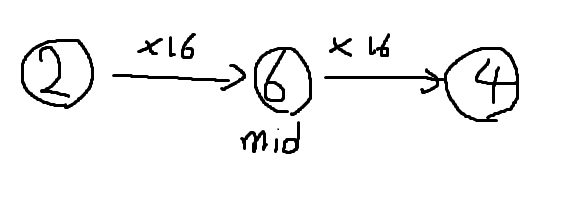 그럼, 32번 이동하면 어디에 도달하게 되는가? 이 때 우리가 노드 6에서 16번 이동하면 4번에 도달하게 된다는 정보를 알고 있다고 해보자. 이렇게 되면 매우 쉬워진다.