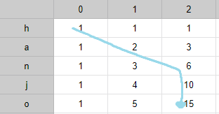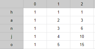 위 테이블로부터 DP[문자열 인덱스][지금까지의 변경 횟수]를 정의할 수 있다. 만약 변경 횟수가 각각 [0,1,1,0,0]이라면 다음과 같은 순서를 따른다.
