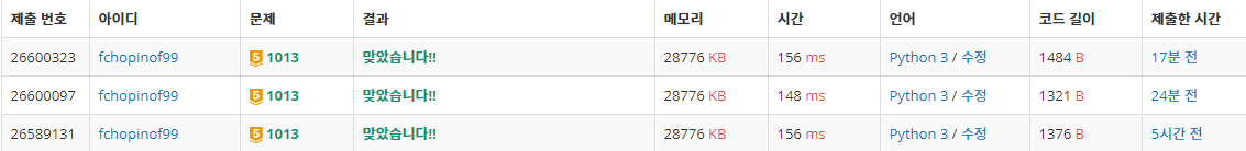 또한, 전혀 일반화가 되지 않은 풀이였기 때문에 코드도 난잡해져서 정답을 맞혔음에도 기분이 썩 좋진 않았고요.