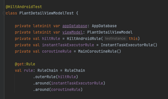 Using test rules can help you write more efficient and effective tests, and can save you time by automating common testing tasks. And @Rule annotation is used to declare the test rule in JUnit. But in sunflower created by Google Android, @get:Rule is used instead of @Rule.