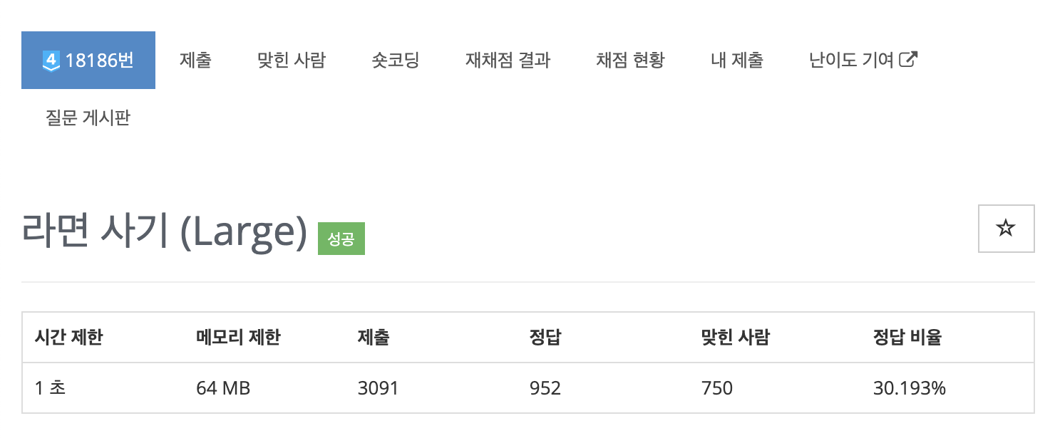 18186번: 라면 사기 (Large)