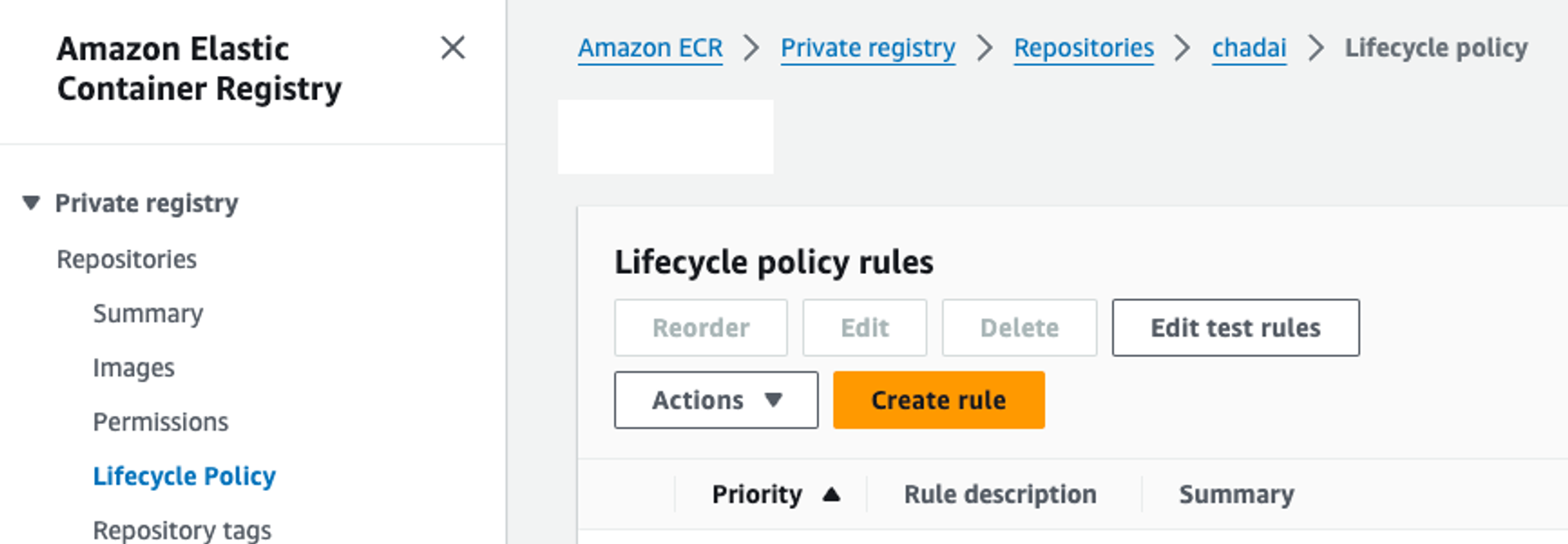 ECR - Repositories - Lifecycle Policy - Create rule 경로로 이동한 뒤 정책을 설정해줍니다.