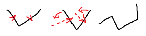 1. 1번 접혀서 만들어진 2개의 선분은, 종이를 접을 때 서로 영향을 미친다.