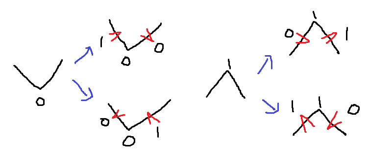 2. 2개의 선분을 접음으로써 생겨나는 0, 1은, 서로 같지 않다.